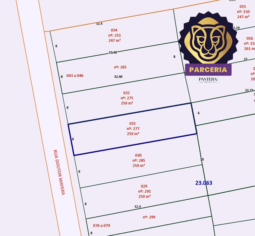Terreno com 259m² de área útil.
